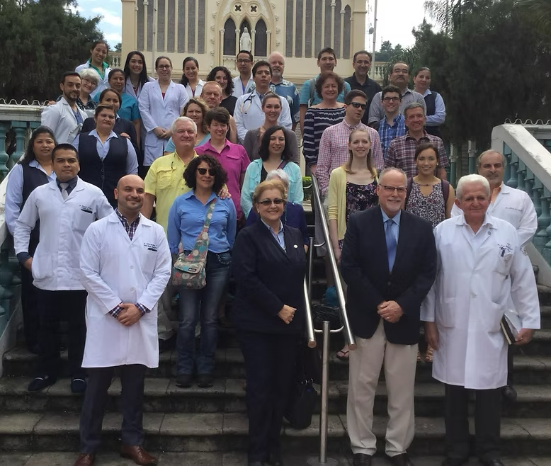 Annie’s Angels group outside of Hospital Luis Vernaza in Guayaquil, Ecuador. The group is led by Dr. James P. Wilton, DPM, FACFAS (front row second from the right).